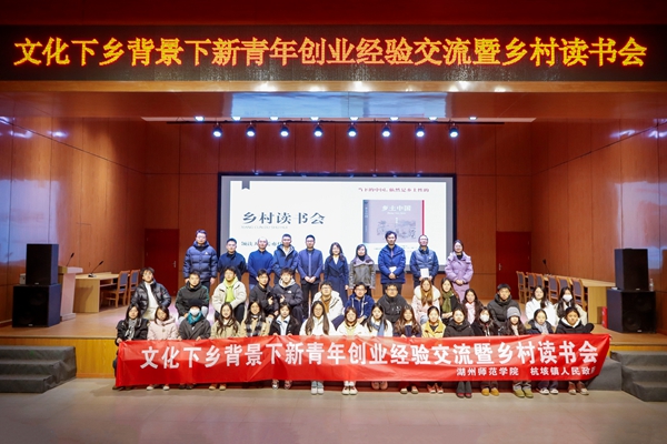 12月12日,我校经济管理学院与安吉县杭垓镇人民政府联合举办的“文化下乡背景下新青年创业经验交流与乡村读书会”在杭垓镇和村文化大礼堂举行,经济管理学院党委书记何阅雄研究员,湖州市首届文化特派员肖方仁,以及行政管理系师生三十余人参加了此次活动。