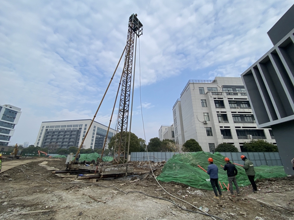 12月26日,随着旋挖钻的轰鸣声响起,科技综合楼室外市政景观工程首根桩基顺利开钻,标志着该工程正式进入实质性施工阶段。学校建设处以及项目施工单位、勘察单位、设计单位、监理单位相关负责人现场查看成桩过程及重要参数。
